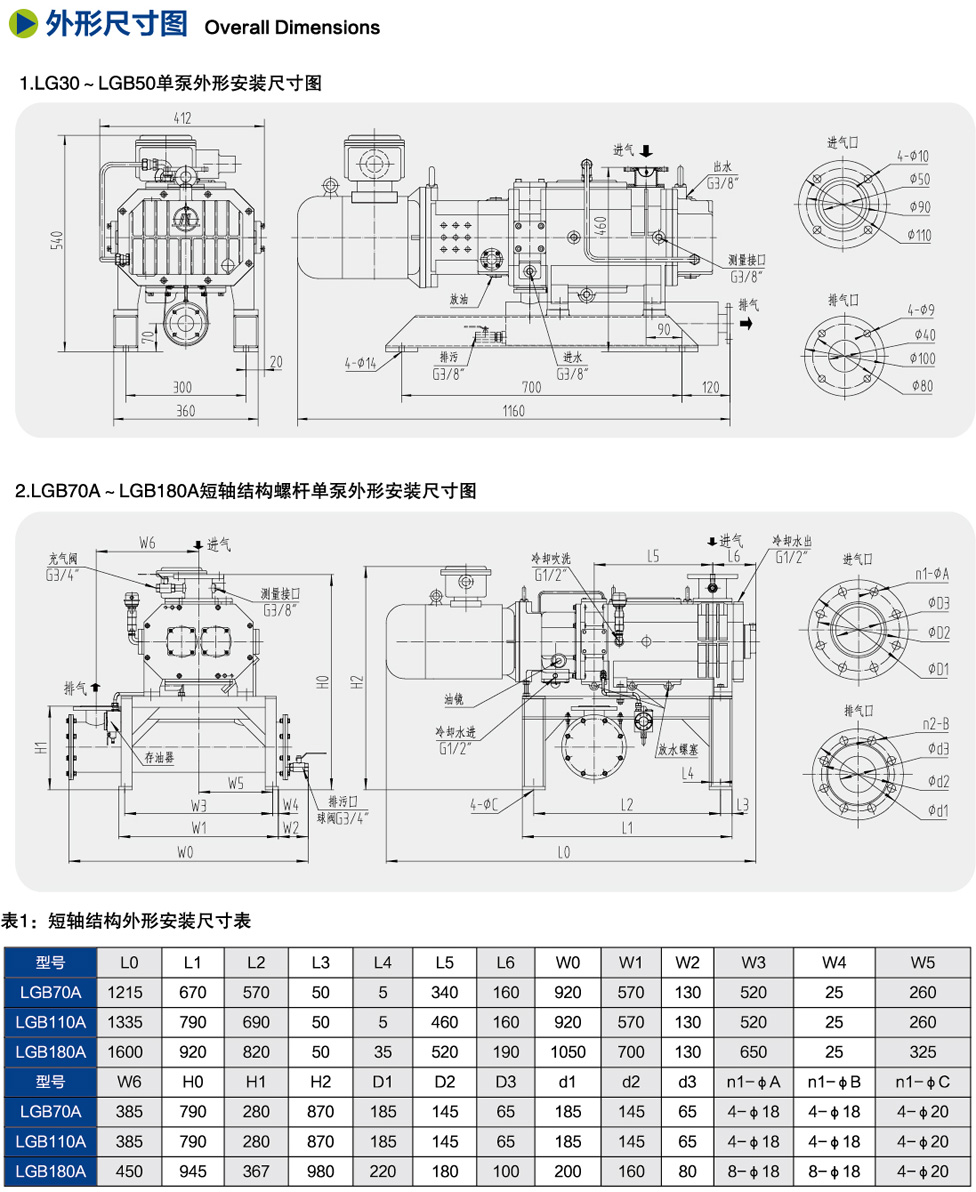LG/LGB干式螺桿真空泵系列 / LGB110短軸結(jié)構(gòu)